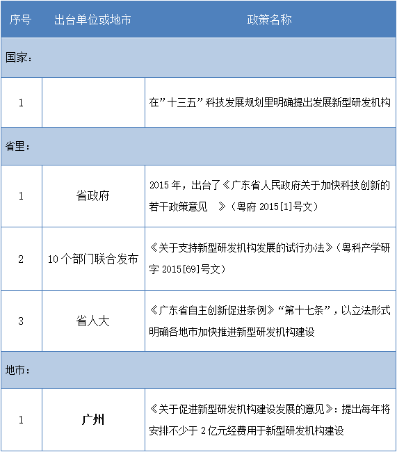 关于新型研发机构的政策一览表